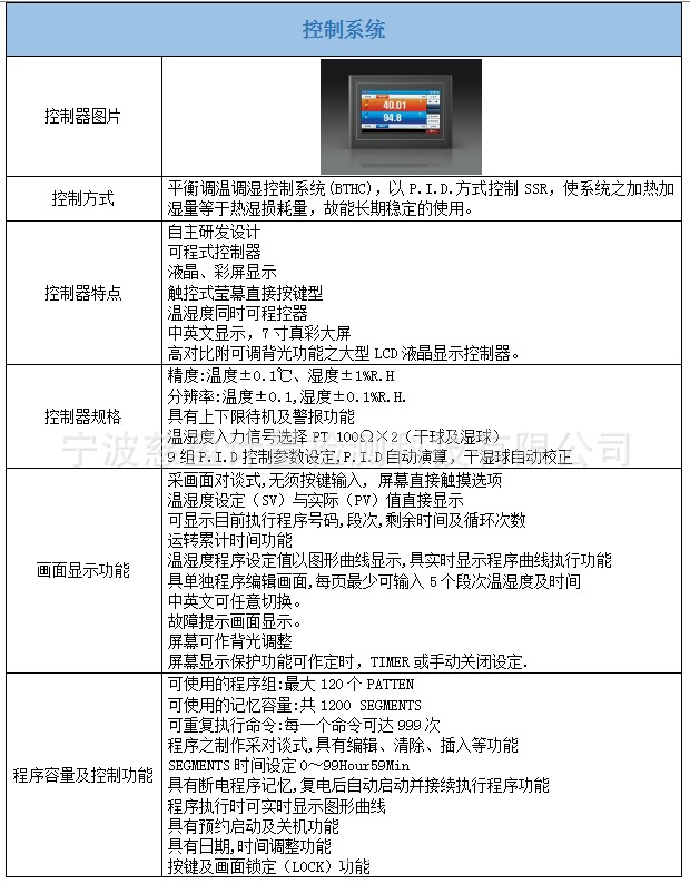 本試驗箱提供高溫、低溫、高濕、低濕的模擬環(huán)境,以檢測橡膠、塑料、電子產(chǎn)品等測試前后的材質(zhì)及強(qiáng)力的減衰程度。本機(jī)亦可模擬貨柜環(huán)境,以檢測橡膠、塑料在高溫高濕下,褪色、收縮的情形。試驗各種材料耐熱、耐寒、耐干、耐濕性能。適合電子、電器、電池、大學(xué)、研究所、檢驗檢疫局、紙品、食品、車輛、汽配零部件、金屬、化學(xué)、建材等行業(yè)工廠單位品管檢測之用。